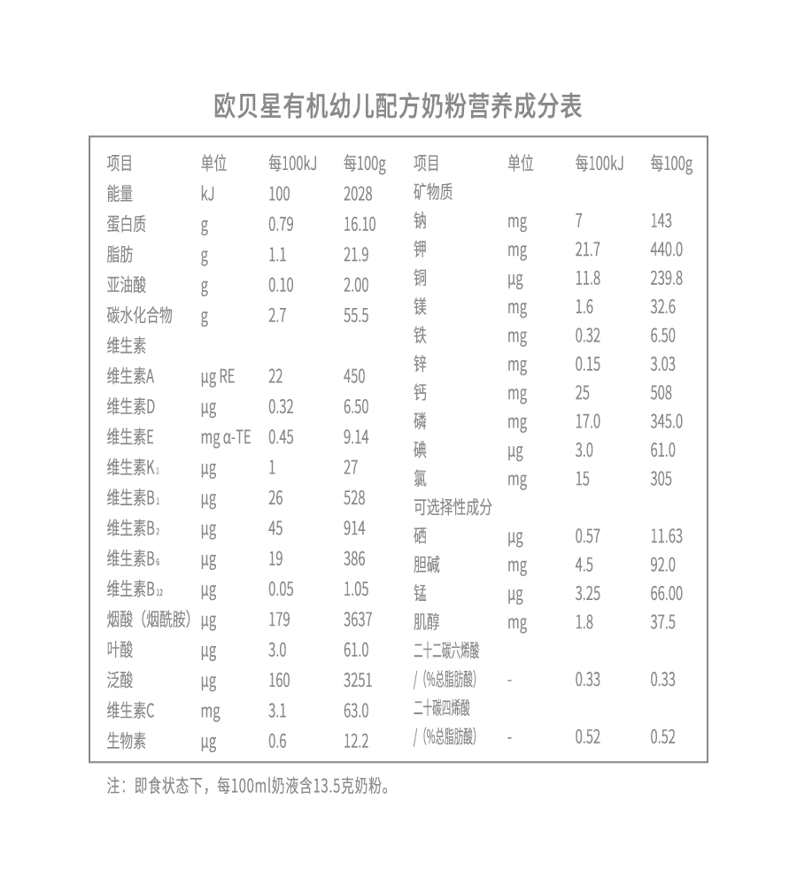 2017年8月歐貝星成為首批首個(gè)通過(guò)國(guó)家奶粉配方注冊(cè)的有機(jī)嬰幼兒配方奶粉,是通過(guò)歐盟有機(jī)認(rèn)證、中國(guó)有機(jī)產(chǎn)品認(rèn)證的雙標(biāo)產(chǎn)品、采用了有機(jī)生牛乳生產(chǎn),是真正的有機(jī)奶粉,更安全。